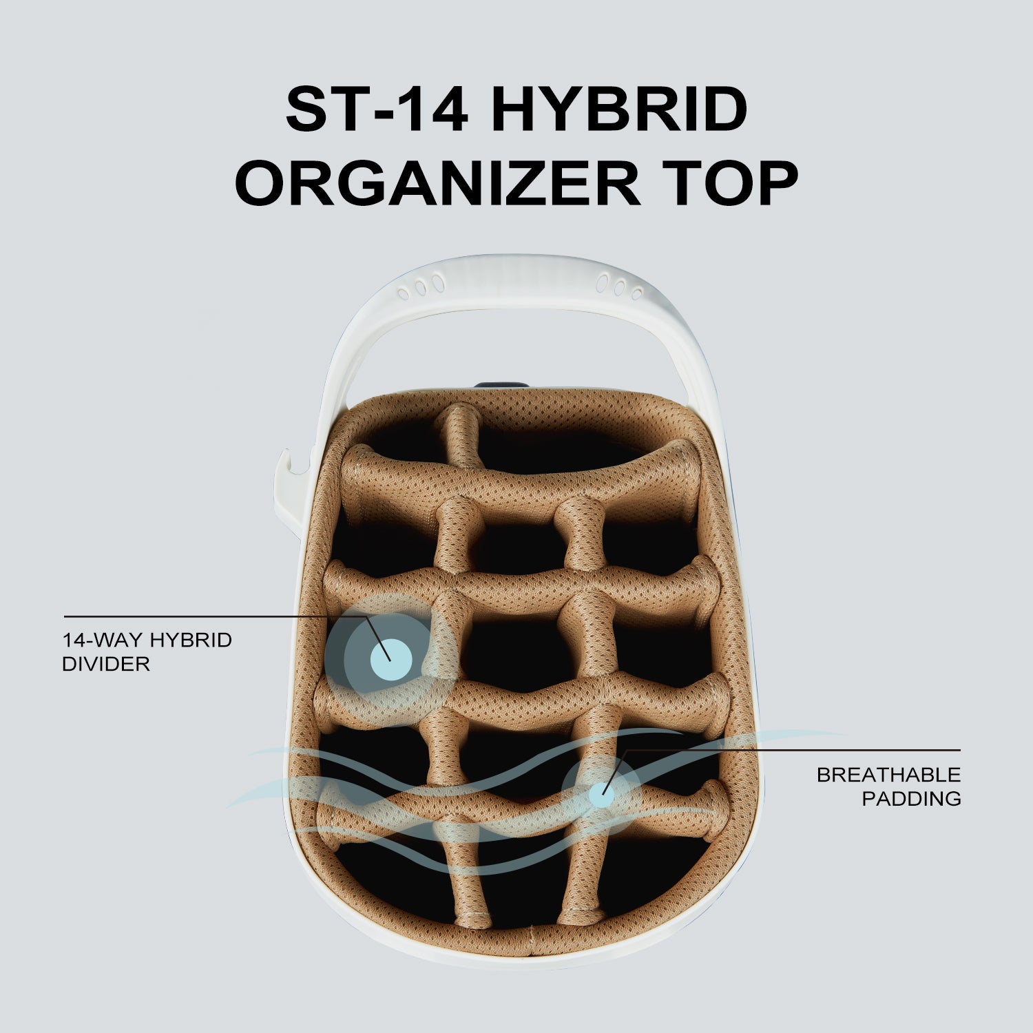 14-Way organizer top with soundless design, perfect fit for oversized and left-handed grips.