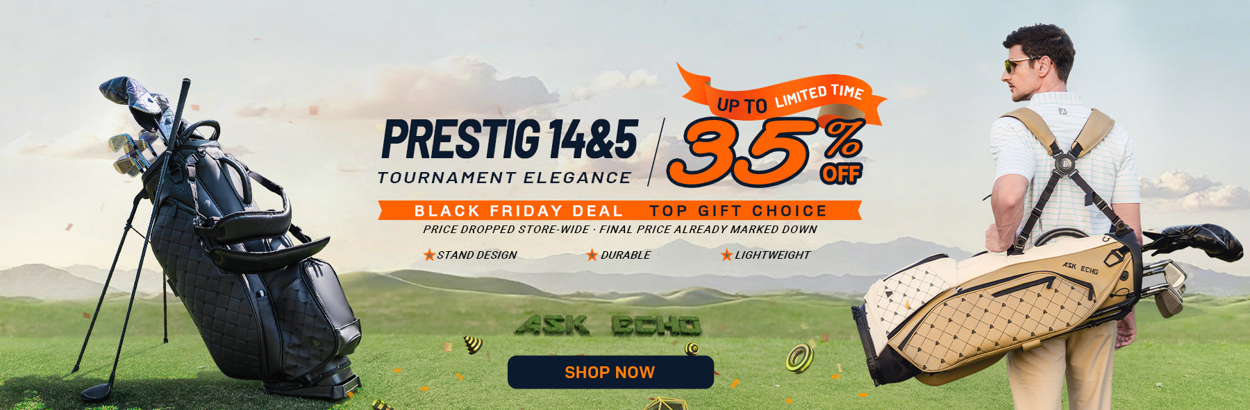 Ask Echo 2025 Prestige-14 Way Full Length Hybrid Leather Stand Bag / BlackAsk Echo 2025 Prestige-14 Way Full Length Hybrid Leather Stand Bag / Black
