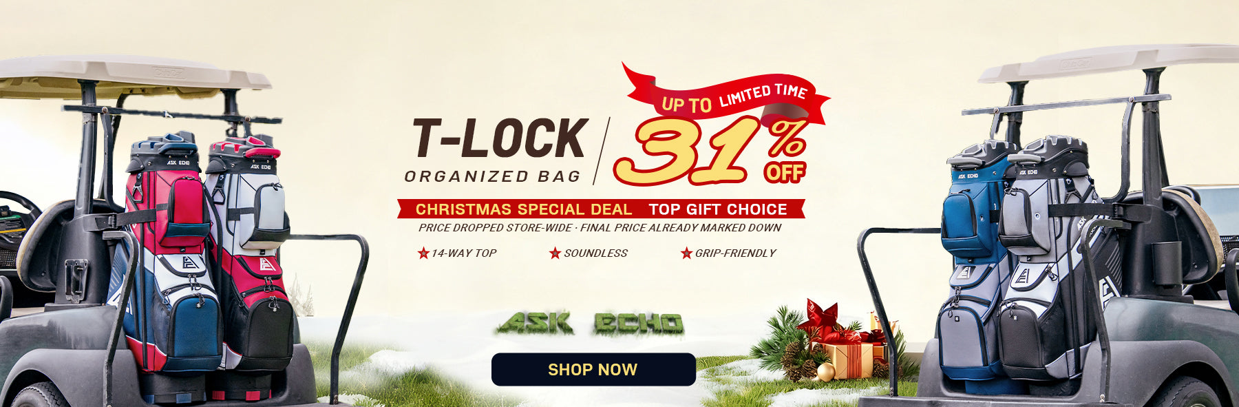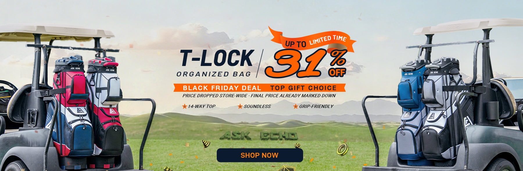 Ask Echo 2024 T-LOCK 14 Way Organizer Dividers Golf Quiet Cart Bag / BlackASK ECHO T-LOCK Cart Bag in Black top view with 14-way full-length organizer divider system