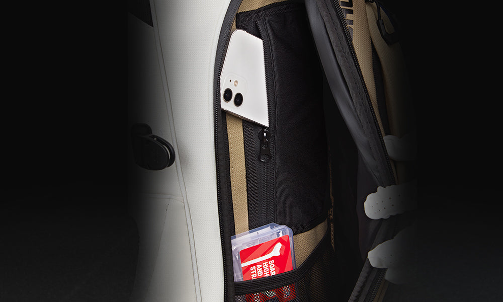 With 20% more storage space than standard stand bag, pocket is meticulously designed to meet various organization needs, ideal for storing valuables like wallet, watch and keys.