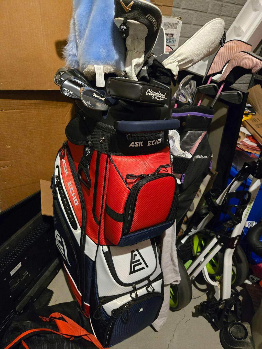 - With its innovative organizer top, keeps your clubs secure and quiet while you move around the course.