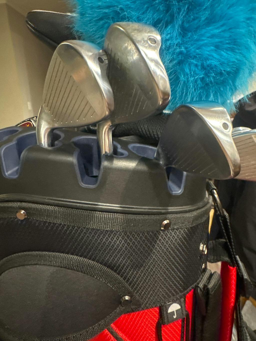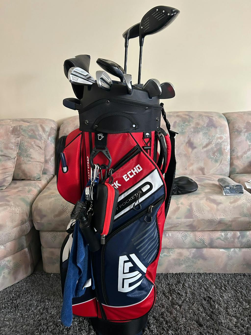 - With its innovative organizer top, keeps your clubs secure and quiet while you move around the course.