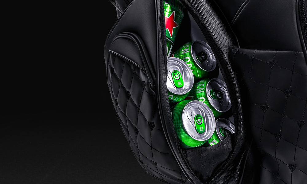 - Beverage sleeve at bottom left side only, right side is putter tube.