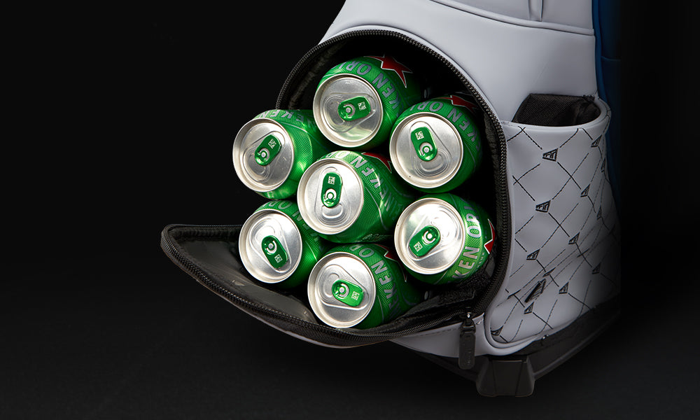 - Large compartment with zippered at the bottom can storage enough balls or drinks on longer rounds.