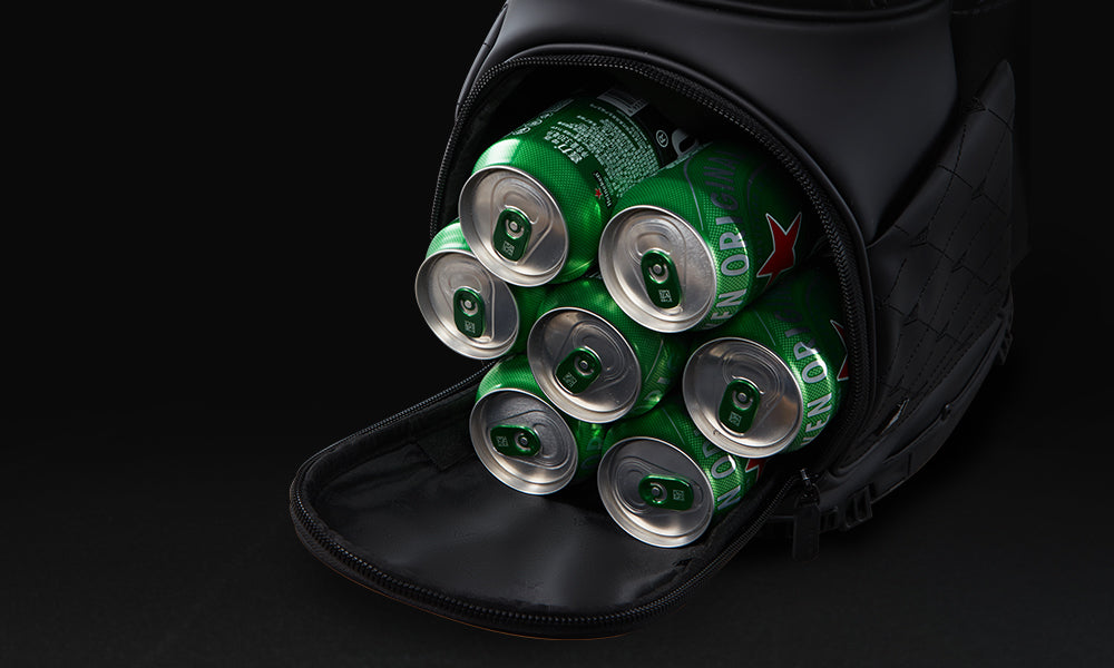 - Beverage sleeve at bottom left side only, right side is putter tube.