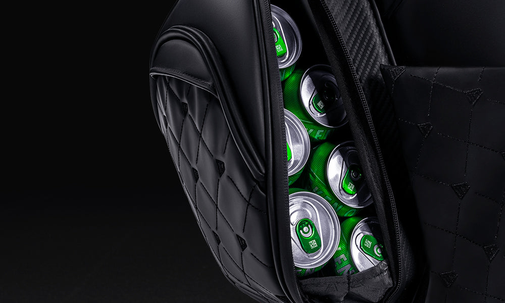 - Beverage sleeve at bottom left side only, right side is putter tube.