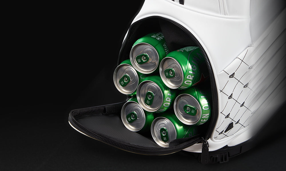 - Beverage sleeve at bottom left side only, right side is putter tube.