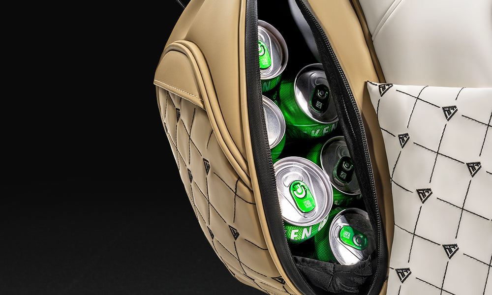 - Double bottle sleeves on each side keep drinks cold and snacks easily accessible.