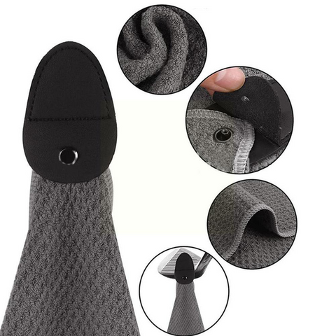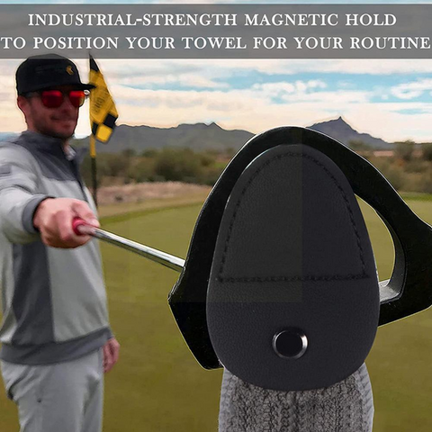 Industrial-strength magnets secure towels to clubs and bags without bending over to pick them up and worrying about dropping them.